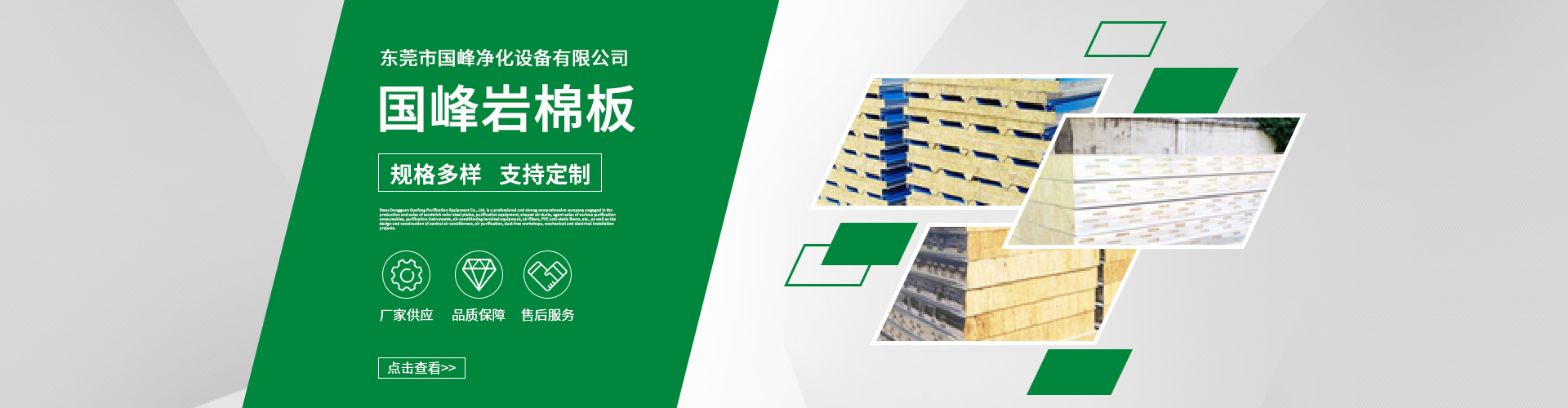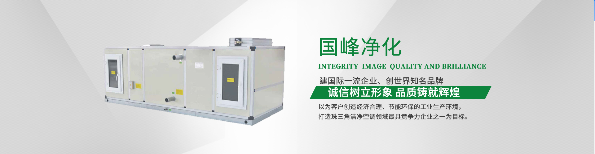 东莞市国峰净化设备有限公司隶属于东莞市国鑫净化工程有限公司从事夹芯彩钢板、净化设备、成型风管生产销售、代理销售各种净化耗材、净化仪器、空调末端设备、空气过滤器、PVC防静电地板等以及对中央空调、空气净化、无尘车间、机电安装工程设计与施工的专业性及强的综合性公司。